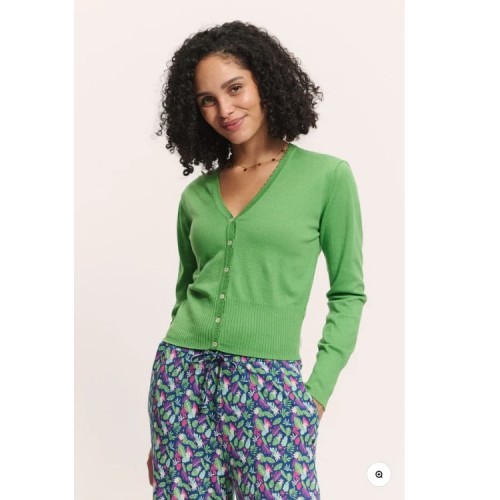 Ce cardigan en tricot de coton bio vert Tranquillo saura apporter du peps à votre tenue ! Il est très agréable à porter, doux et souple.