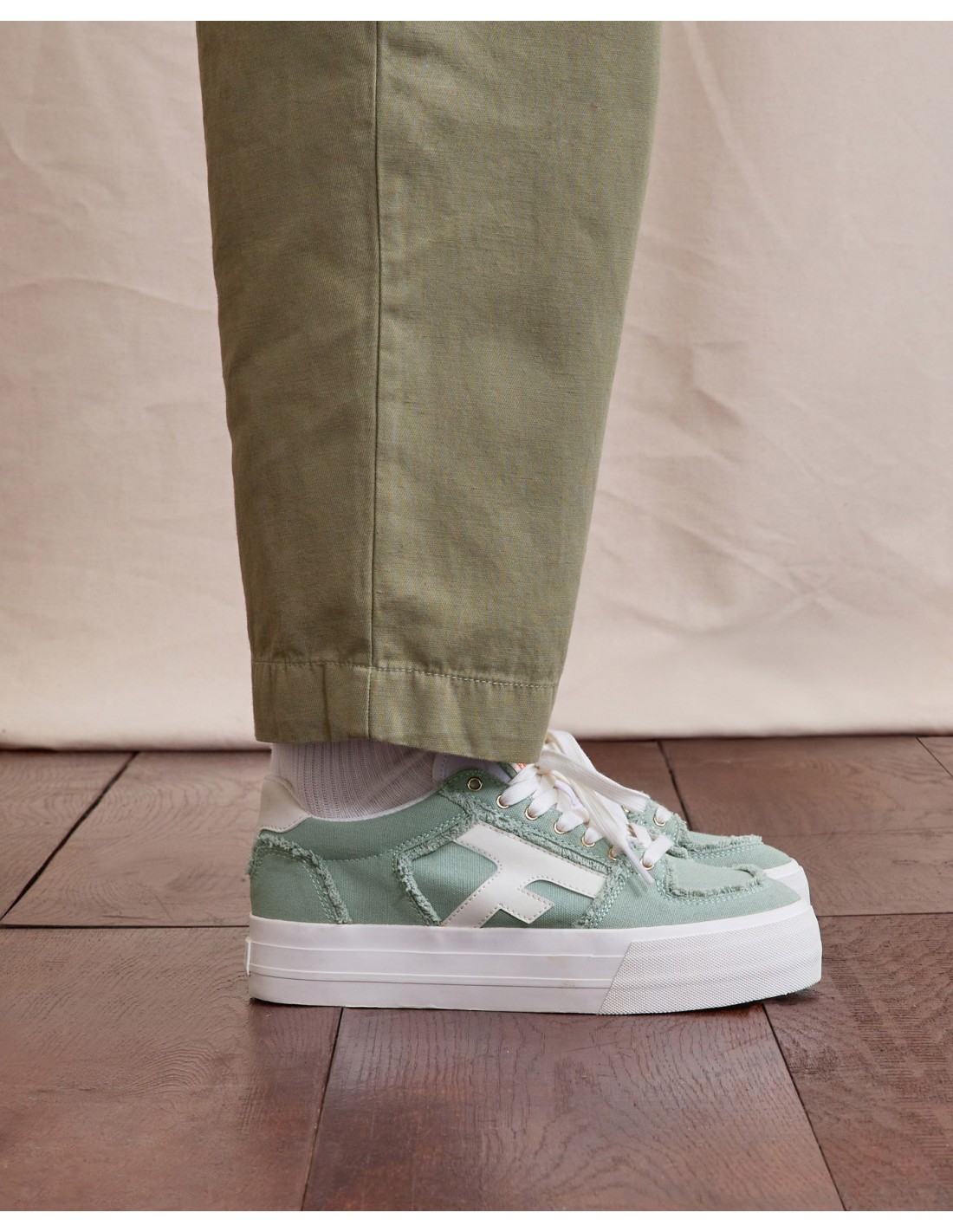 Les baskets femme vert clair WALNUT PLATFORM revisitent les codes du streetwear avec une semelle plateforme marquée.