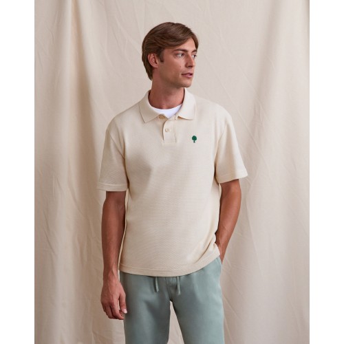 Sa matière en jersey piqué texturé apporte du relief. La patte boutonnée à deux boutons reste discrète. Le logo arbre brodé signe la pièce. La coupe large assure un porté confortable. Un polo pensé pour les beaux jours.