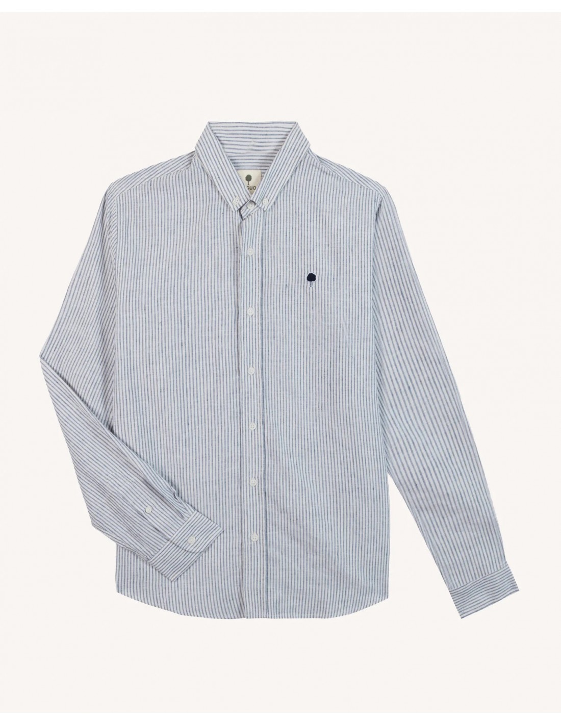 La chemise en lin homme écru et bleu marine IVOY combine fraîcheur et élégance.