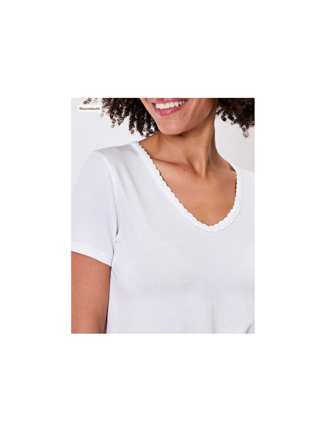 - Détails du produit : encolure en V bordée d'une tresse, manches courtes, tissu élastiquée.
