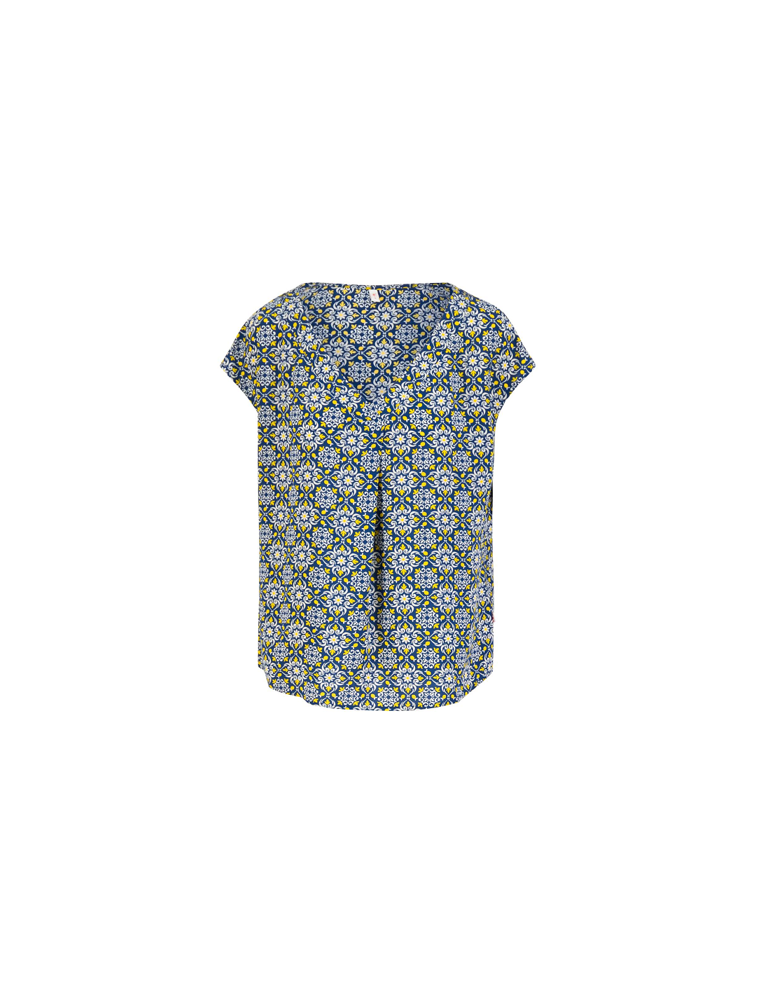TOP FANTAISIE ECOVERO IMPRIME FLEURI BLEU ET JAUNE - BLUTSGESCHWISTER